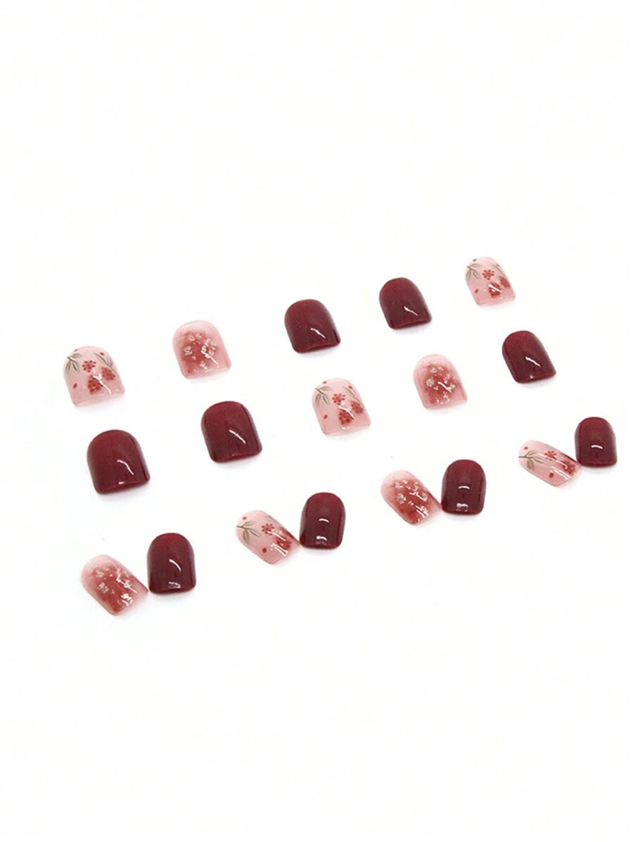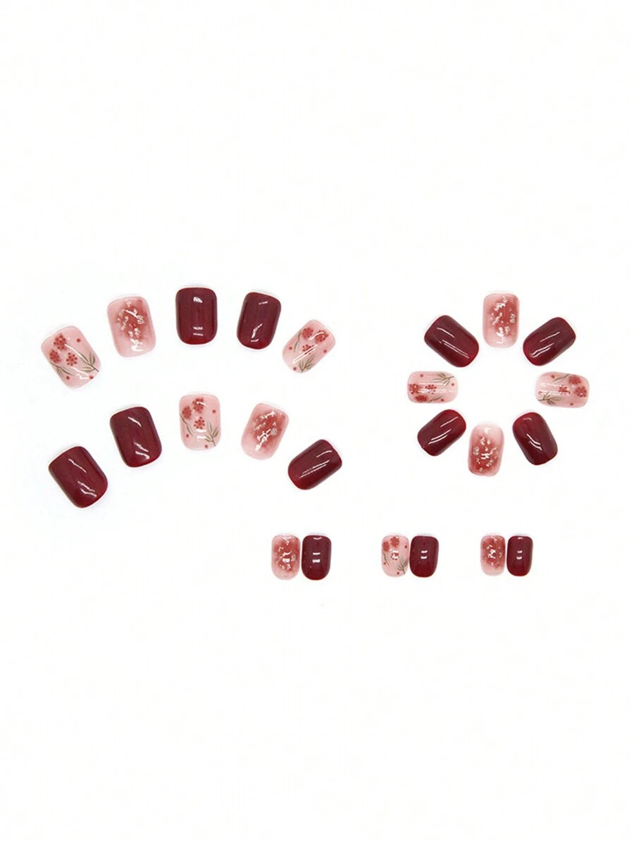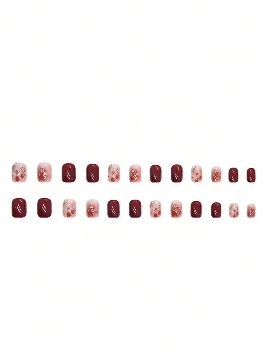 Shein Améliorez votre look avec 24 pièces de faux ongles carrés longs à motif fleurs pailletées estompées